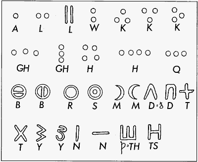 hingegen ein anderes, als „Ogam Consaine“ bezeichnetes Alphabet.