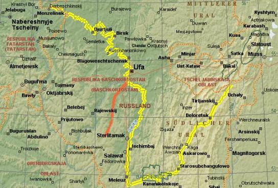południe od Ufa, w kierunku dzisiejszego miasta Sterlitamak zaznaczony był na