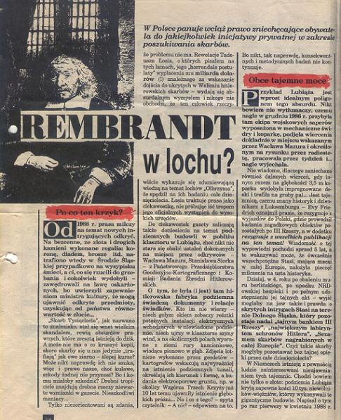znalezienia n.p. obrazu Rembrandta, by "nie uciekł z Polski"!